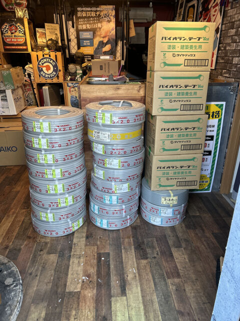 VVFケーブル、CVケーブル、各種電線、テープ類などなど…